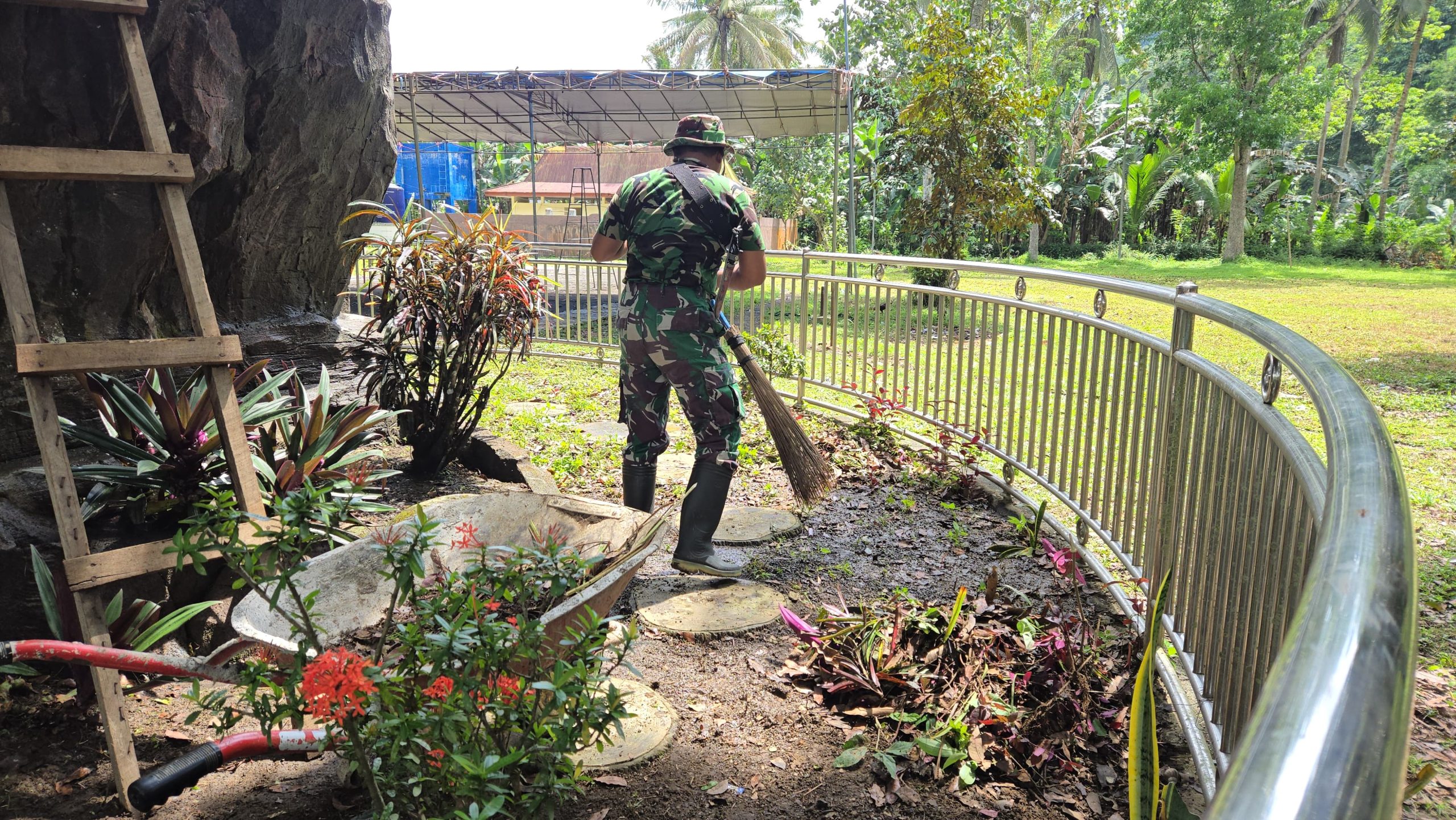 Kegiatan ini merupakan bagian dari persiapan menyambut tamu kehormatan sekaligus mempercantik kawasan yang menjadi titik transit utama dalam kegiatan TMMD. Dengan semangat gotong royong, anggota Satgas dan warga tampak kompak melakukan pengecatan dinding, membersihkan area taman, serta menata lingkungan agar terlihat bersih dan indah.