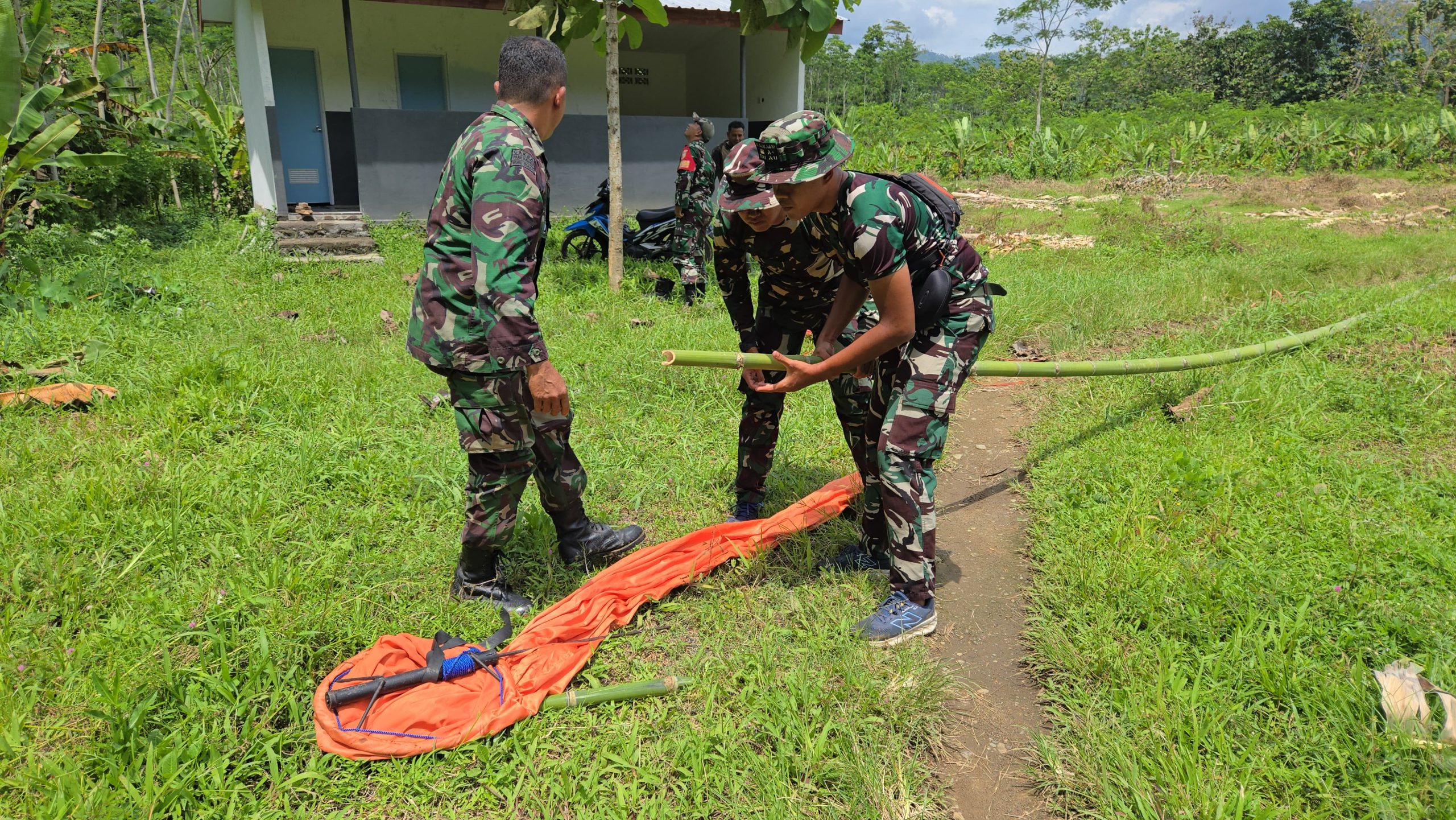 Salah satu persiapan yang tengah dilakukan adalah pemasangan tanda helipad yang akan digunakan sebagai lokasi pendaratan helikopter tamu undangan VVIP. Kegiatan tersebut dilakukan langsung oleh personel Satgas TMMD dengan penuh semangat dan ketelitian.