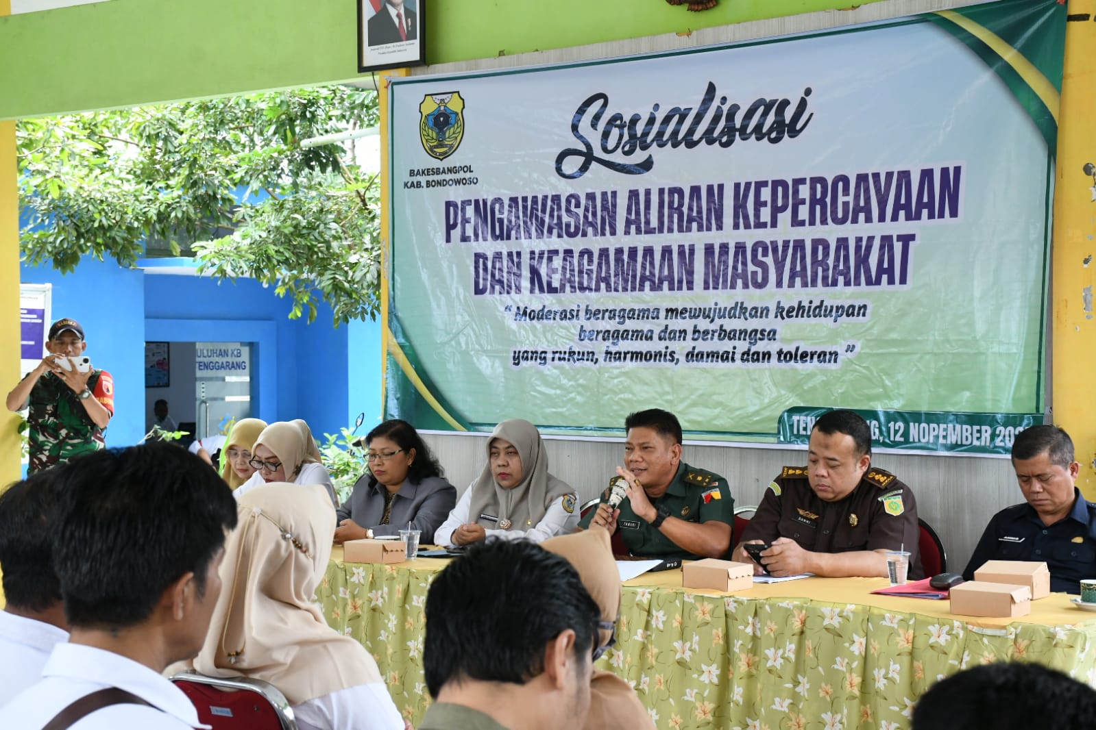 Selain Kasdim, kegiatan juga diisi oleh narasumber dari Kejaksaan Negeri Bondowoso dan Bakesbangpol Kabupaten Bondowoso yang memaparkan pentingnya peran masyarakat dalam mengawasi aliran kepercayaan yang menyimpang dari nilai-nilai kebangsaan.
