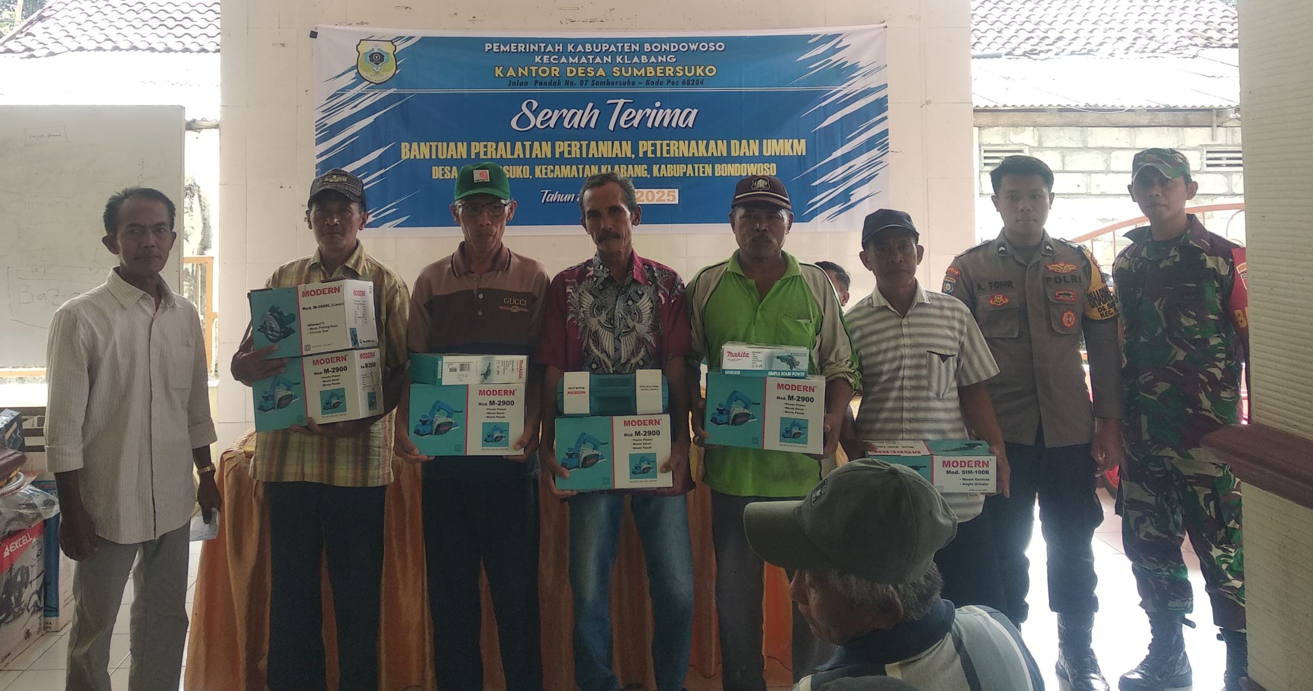 Pemerintah Desa (Pemdes) Sumber Suko, Kecamatan Klabang, Kabupaten Bondowoso, merealisasikan program pemberdayaan masyarakat melalui Dana Desa Tahun Anggaran 2025 dengan menyerahkan bantuan peralatan kepada warganya.