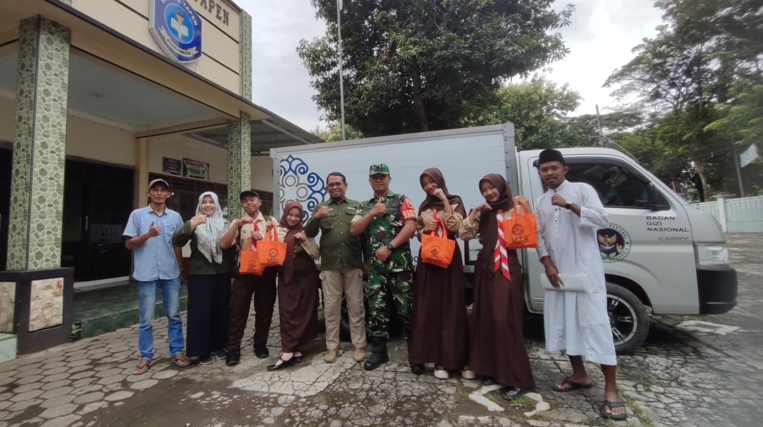 Babinsa Tapen dari Koramil 0822/11 Tapen turut mendampingi kegiatan penyaluran Makan Bergizi Gratis (MBG) dari SPPG Tapen kepada para siswa di SMPN 2 Tapen, Kabupaten Bondowoso.