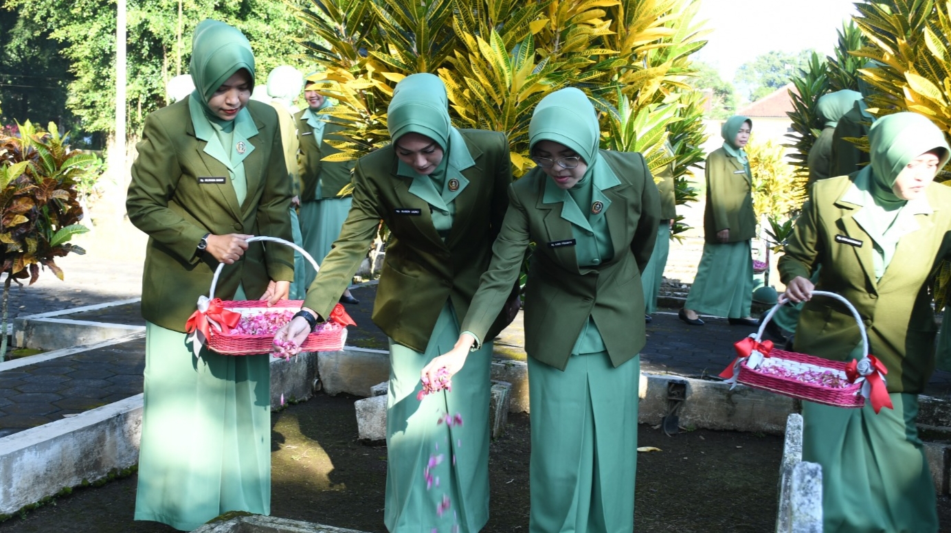 Dalam rangka memperingati Hari Ulang Tahun ke-80 Persit Kartika Candra Kirana (KCK), Ketua Persit Cabang XXXVI Kodim 0822 Bondowoso Ny. Ilma Prawito memimpin Upacara Ziarah Rombongan di Taman Makam Pahlawan (TMP) Bondowoso, Jalan Diponegoro, Kelurahan Kotakulon, Rabu (1/4/2026). Kegiatan yang berlangsung sejak pukul 06.30 hingga 07.35 WIB tersebut diikuti sekitar 100 anggota Persit dari berbagai satuan di wilayah Bondowoso.