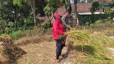 Bondowoso, Siber Nusantara.co.id Serka Steven Babinsa 0822/08 Wonosari Kodim 0822 Bondowoso membantu warganya panen padi…
